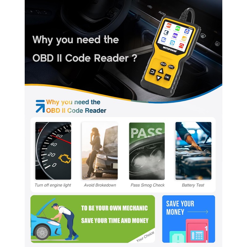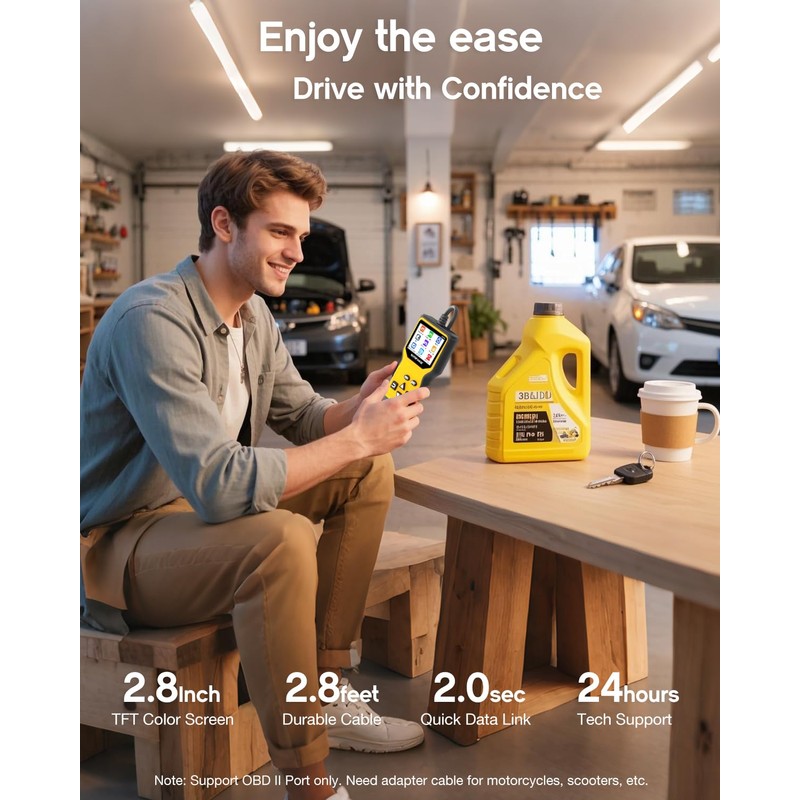 - Plug & Play for Every Driver - No Apps or WiFi needed. No additional battery or charger needed. Extended cable reaches tight spaces, while the intuitive menu works right out of the box. Perfect for DIYers and mechanics.