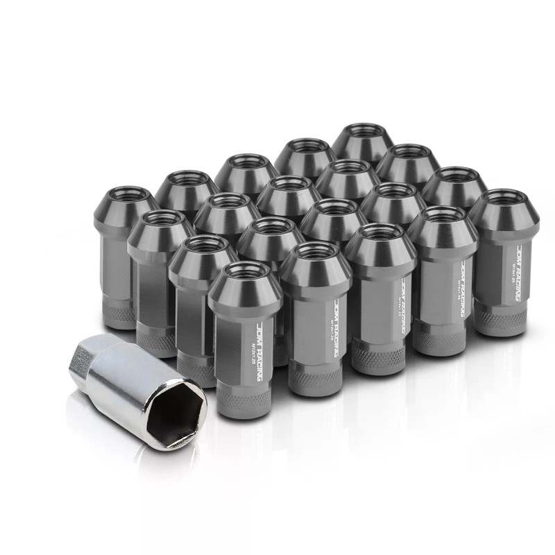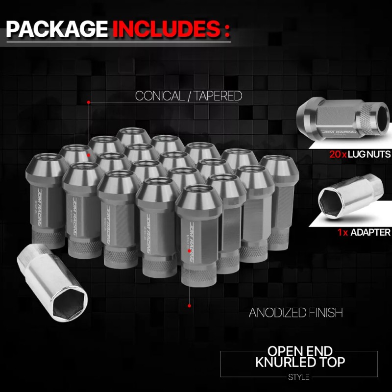 Motor-1 (20)Gunmetal M12x1.25 50mm Aluminum Open Knurled Top Tuner Wheel Lug Nut+Adapter