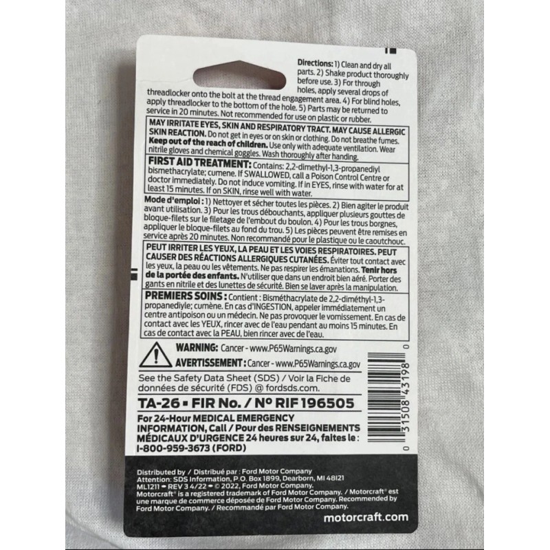 Crafted with the high-quality standards of Motorcraft, this 262 TA-26 threadlocker is a reliable choice for car and truck owners alike. Its bright red color also makes it easy to identify and ensures that your projects are completed with precision and accuracy.