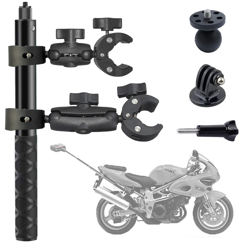Motorcycle Bike Handlebar Clamp Mount with 47.3" Invisible Selfie Stick compa...