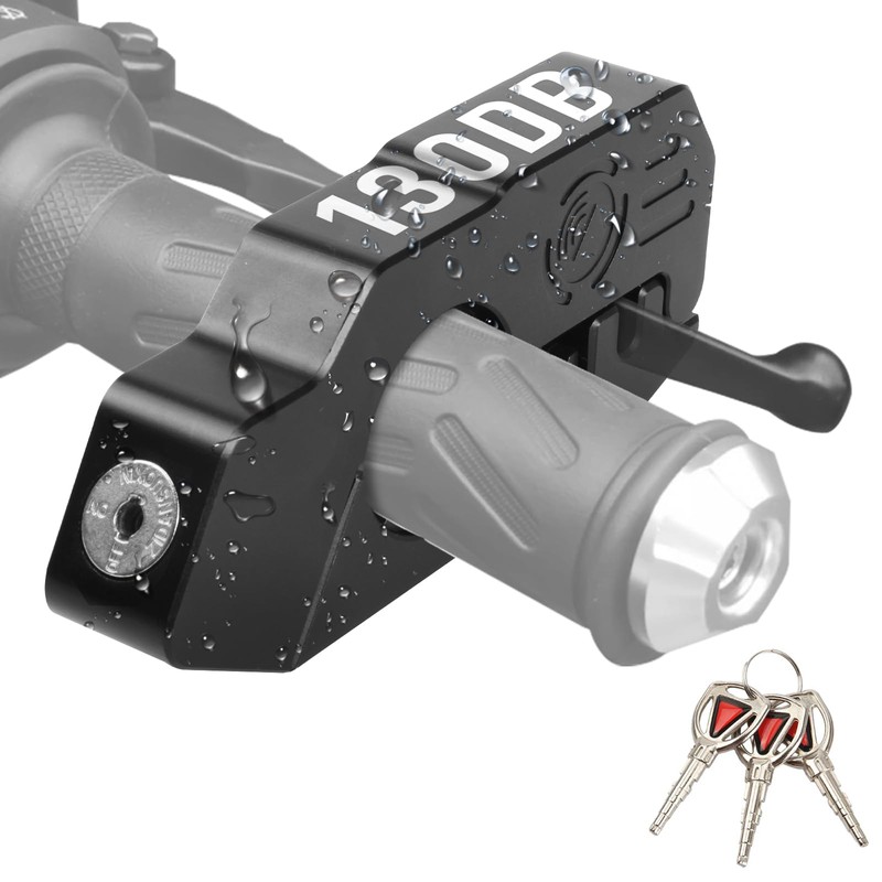 Motorcycle Brake Lock 130 dB Alarm Anti-Theft Motorcycle Handlebar Lock Aluminium Alloy Brake Lever Lock with 3 Keys for Motorcycles, Scooters, Off-Road Vehicles