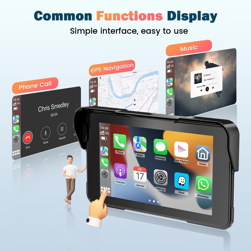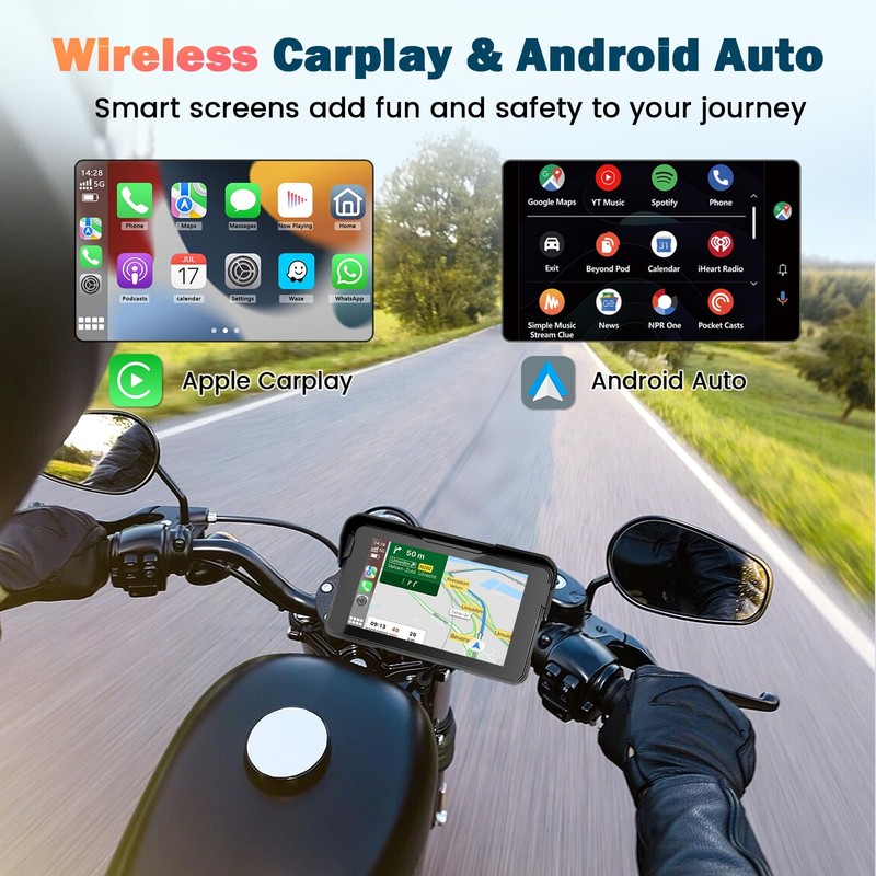 Motorcycle Carplay Screen, Wireless CarPlay and Android Car for Moto, 5 Inch ...