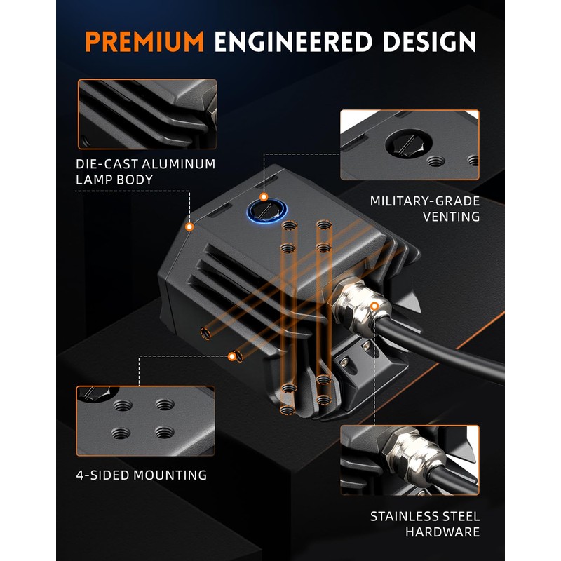 - 𝐃𝐢𝐯𝐞𝐫𝐬𝐞 𝐋𝐢𝐠𝐡𝐭𝐢𝐧𝐠 𝐌𝐨𝐝𝐞𝐬: With 7 unique lighting modes including ▶ Low Amber (Fog Mode) ▶ High White (Off-Road) ▶ Amber+White Combo▶ White Slow Flash (Parking Alert) ▶ White Quick Flash (Emergency)▶ Amber Slow Flash (Hazard) ▶ Amber Quick Flash (Accident Scene)