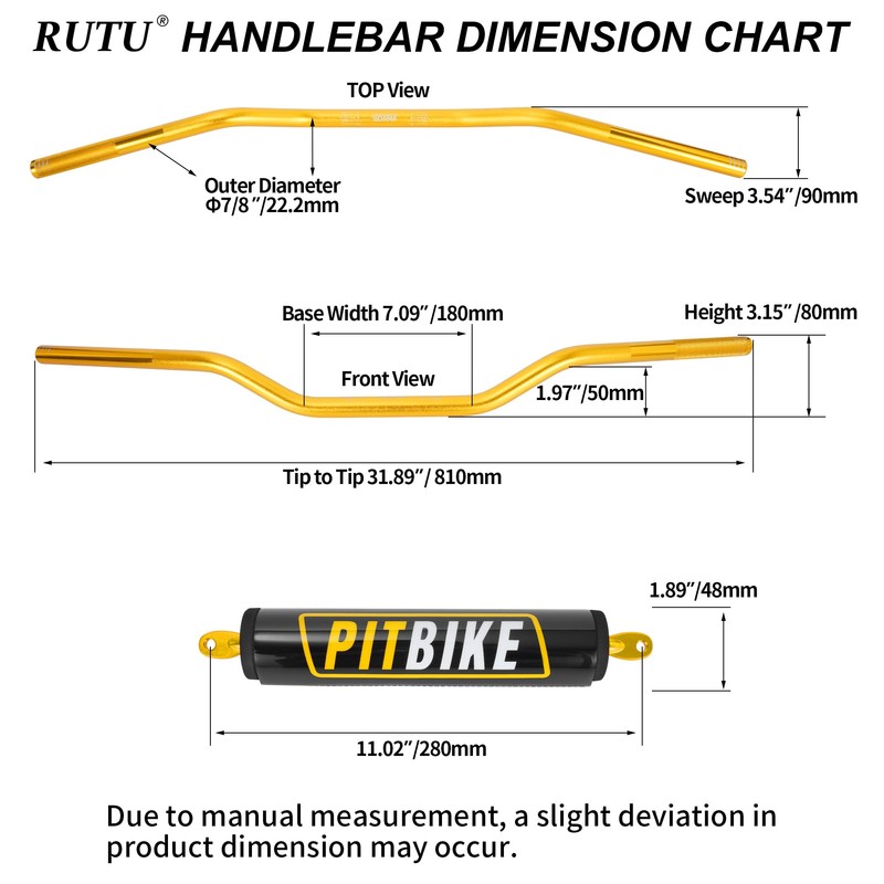- PREMIUM MATERIALS AND CONSTRUCTION-The 6061-T6 aluminum dirt bike handlebars are equipped with crossbar pads that are upgraded in material and thickness to achieve better reinforcement of the handlebar and protection of the rider.