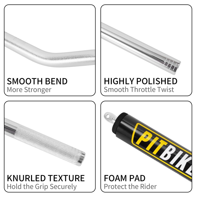 - PREMIUM MATERIALS AND CONSTRUCTION-The 6061-T6 aluminum dirt bike handlebars are equipped with crossbar pads that are upgraded in material and thickness to achieve better reinforcement of the handlebar and protection of the rider.