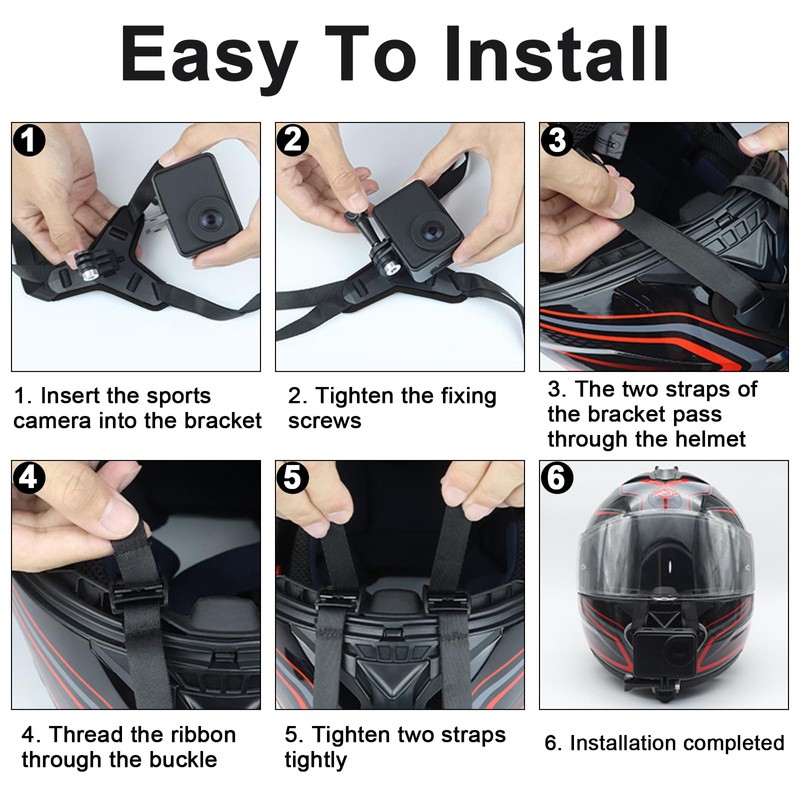 - Easy to install: for GoPro mount helmet adopts one-piece mounting design, easy to use, without the need for additional assembly, the motorcycle helmet mount adopts the snap-type design, assembly and disassembly are very simple, you just need to fix the strap through the helmet and fixed to complete the installation, very quick and easy to use