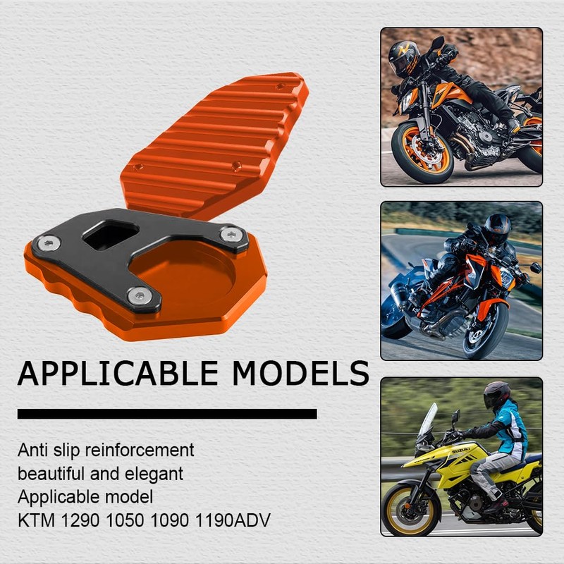 - [Fitment]:Aluminum Stand Foot Enlarger are suitable for KTM 1290 1050 1090 1190ADV(see detail description for more models). The dimensions are 99x67mm /38.98x26.38 inches. Please confirm your car model and size before purchasing.