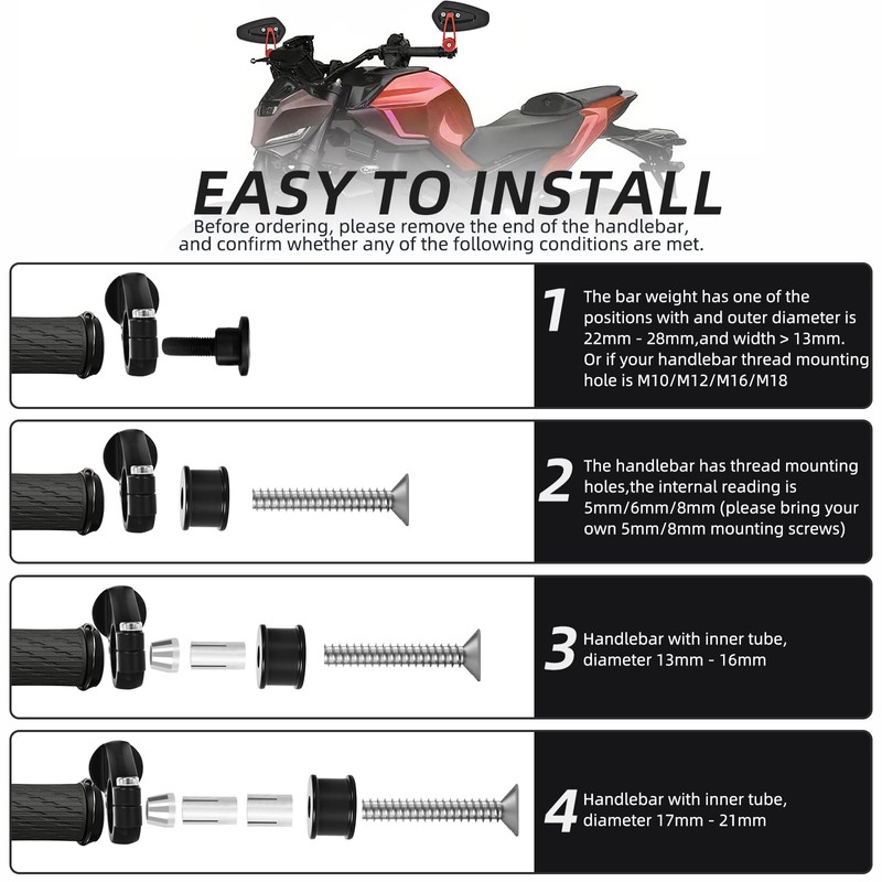 • Enjoy Warranty, Shop with Assurance: All GAMAZING motorcycle mirrors come with warranty. Have questions? Our support team is always here.