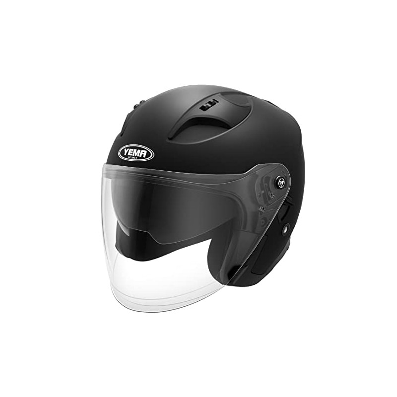 Motorcycle Open Face Helmet YEMA YM-637 DOT Approved 3/4 Half Helmet with Sun Visor for Adult Men Women - Matte Black,Small