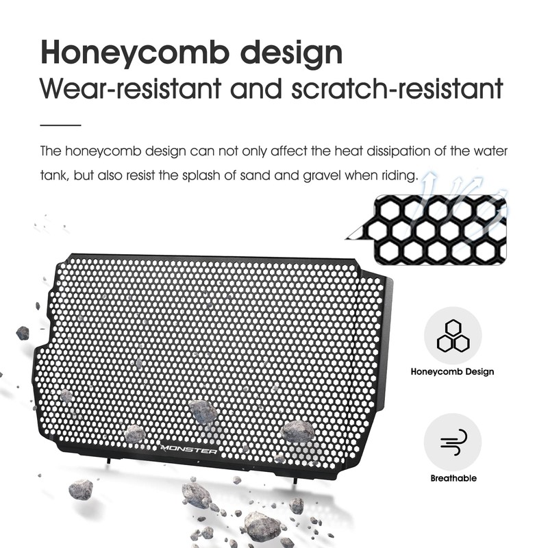 - Function:The Grid design helps to completely reduce air resistance and to fully feel the pleasure of speed. The radiator guard is designed along the radiator so that the guard can protect the radiator securely and effectively.