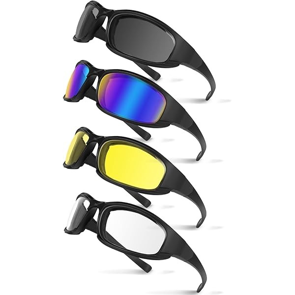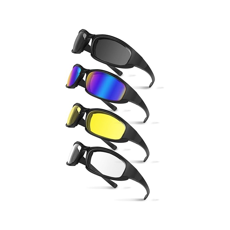 Motorcycle Riding Glasses Motorcycle Goggles 4PCS Padding Goggles Motorcycle Sunglasses UV Protection Dustproof Windproof for Outdoor Actives (Black+Blue+Yellow+Clear)