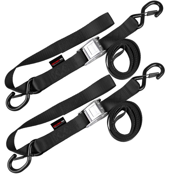 Motorcycle Tie Down Straps (2 Pack) Lab Tested 3,300lb Break Strength, Steel Cambuckle Tiedown Set with Integrated Soft Loops - Better Than a Ratchet Black