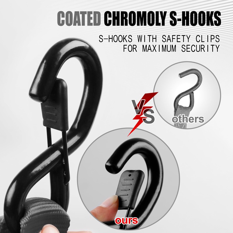 - COATED CHROMOLY S-HOOKS - Full Bend S Hooks with Spring Loaded Keeper Clip For 100% Safety