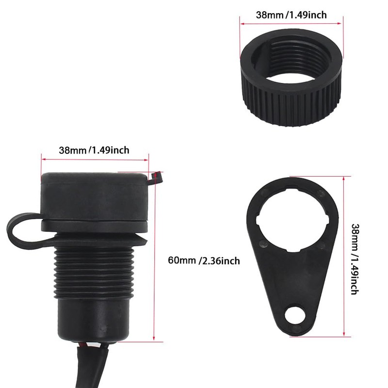 - Motorcycle USB charging socket with dual 5V/2A output ports, can charge 2 devices simultaneously and quickly with high efficiency.