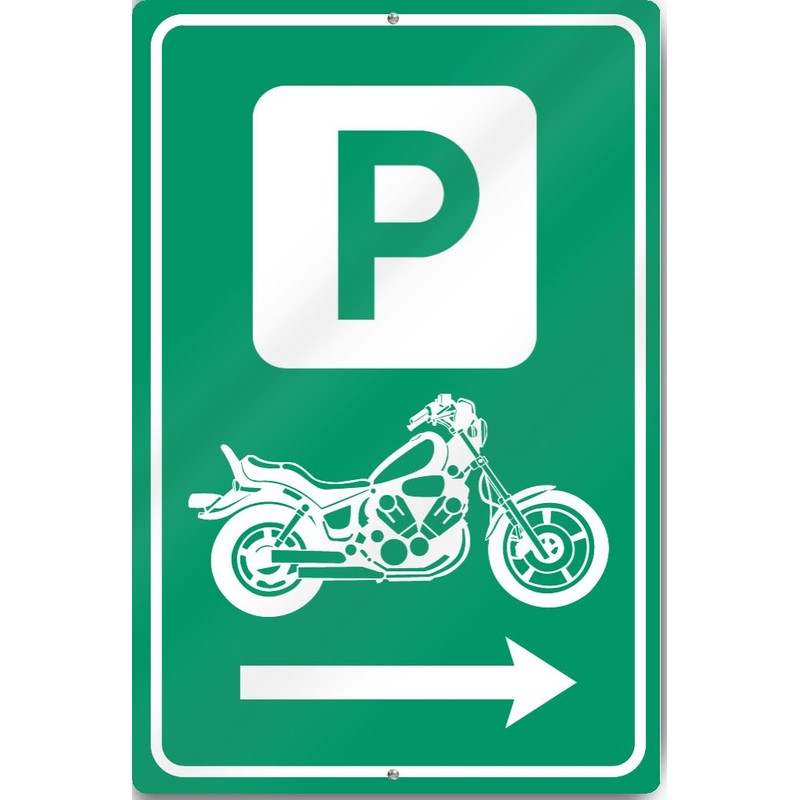 Motorcycle With Right Directional Parking Arrow Sign 12" wide x 18" tall Heavy Gauge Aluminum