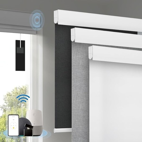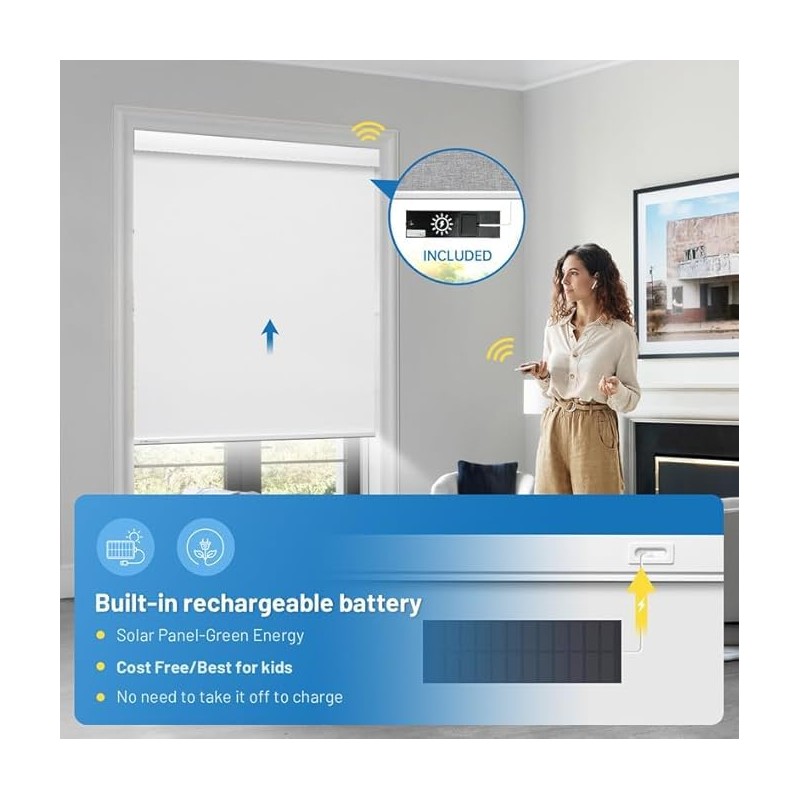 Motorized Blinds with [Free Solar Panels] Upgraded Smart Blinds, Blackout Electric Blinds with Remote,Automatic Roller Shades for Windows Work with Alexa Google Home