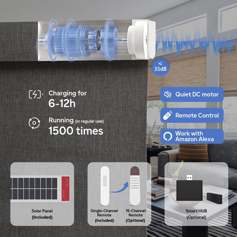 - 【SOLAR PANEL INCLUDE】 Our motorized blinds eliminate the need for manual adjustments, freeing your hands for other tasks. Each set of motorized blinds comes with a complimentary solar panel, Compared with the traditional Automatic Blinds charging method. This easy-to-install, eco-friendly feature promotes sustainable living by reducing environmental impact. Additionally, it ensures a safer home environment for children and pets.