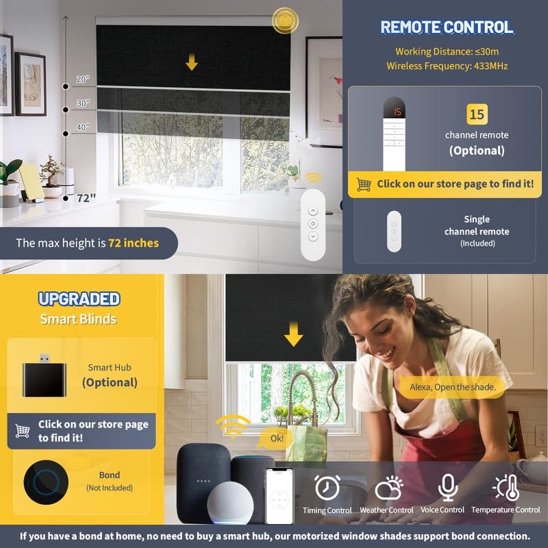 - UPGRADE TO SMART BLINDS: Now you have the chance to upgrade with just a smart hub (optional). Loved by high-tech lovers. You can get it from the ''Upgrade to smart-smart hub'' option on our page. With this smart hub, you can control smart blinds remotely with a phone, even with your voice. It is compatible with all models of Alexa and Google Assistant. Just say: "Alexa/Google, open the blinds." More suitable for people with disabilities, children, and the elderly.