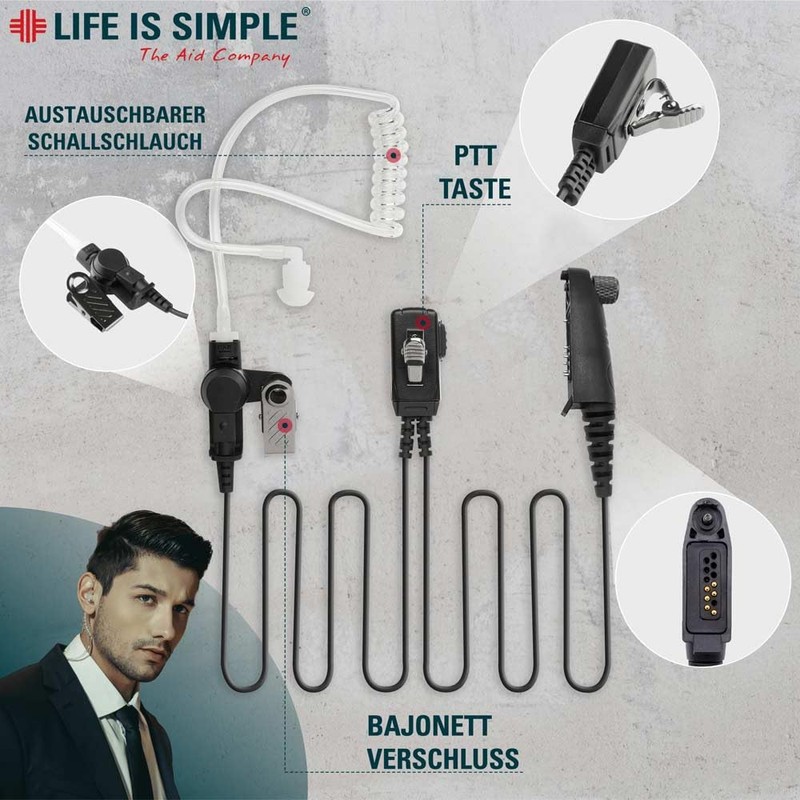 Das Motorola Security Headset mit Schallschlauch für Motorola GP344 GP388 ist für das verdeckte Tragen perfekt geeignet und ist daher im Sicherheitsbereich sowie beim Personenschutz oft im Einsatz. Das Produkt ist kompatibel mit den Handfunkgeräten der Motorola GP-Compact-Serie z. B. GP344, GP388, GP644, GP688 und allen baugleichen Modelle.