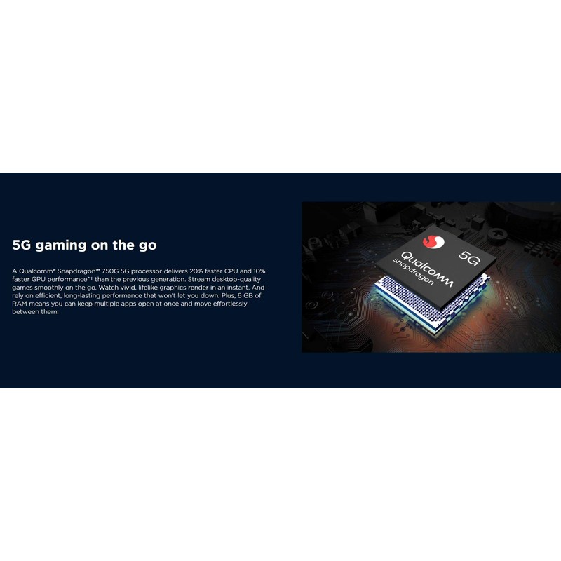 - 64GB ROM, 4GB RAM, Qualcomm SM7225 Snapdragon 750G 5G (8 nm), Octa-core, Adreno 619, Android 10