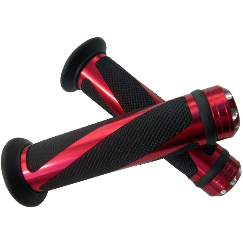 - Brand New Aluminum 7/8" 22mm Handlebar Grips with Red removable CNC aluminum bar end cap