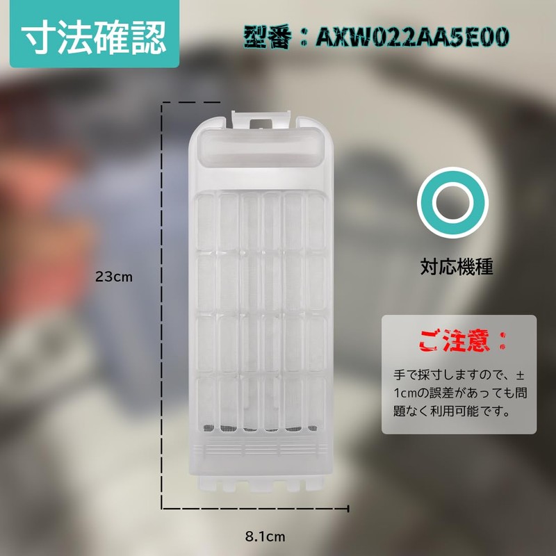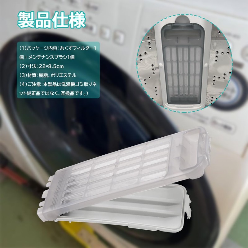- (Product Specifications) 1. Model Number: AXW022AA5E00. Package Includes: 2 x Washing Machine Lint Filters + 1 x Maintenance Brush. 3. Dimensions: 9.1 x 3.2 inches (23.1 x 8.1 cm). Note: This product is not an authentic Panasonic washing machine garbage removal net