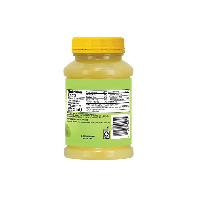 Mott's No Sugar Added Applesauce is the perfect snack or meal companion. It's a good source of Vitamin C and free of cholesterol. Bringing the best of the orchard to your household, Mott's helps families enjoy delicious fruit goodness every day. The apple juice and sauce brand is dedicated to giving moms easy ways to help their families be their very best. Mott's has a strong heritage and has been the trusted apple juice and sauce brand since 1842. Mott's hold the apples to a very high standard, that's why the products pack lots of delicious fruit flavor from ripe apples into every serving. Whether you're home with your family or on-the-go and in need of a snack, Mott's has a product for you. We also offer an extensive suite of flavors so you can add variety in your snacking. Mott's 100 percent Apple juice comes in refreshing flavors like Apple Cherry, Apple White Grape and Fruit Punch while sauce has options like Cinnamon and Mixed Berry so you'll be sure to find something that satisfies your taste buds. You won't find any artificial flavors in Mott's products, so you can feel good about making healthy choices.