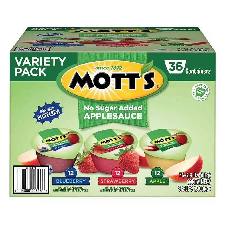Mott's No Sugar Added Applesauce Variety Pack Cups, 36 pk/3.9 oz