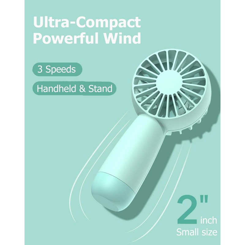 Mottinhill Handheld Portable Mini Fans for Travel, 4800mAh Rechargeable Battery Operated, D105B Blue (Green)