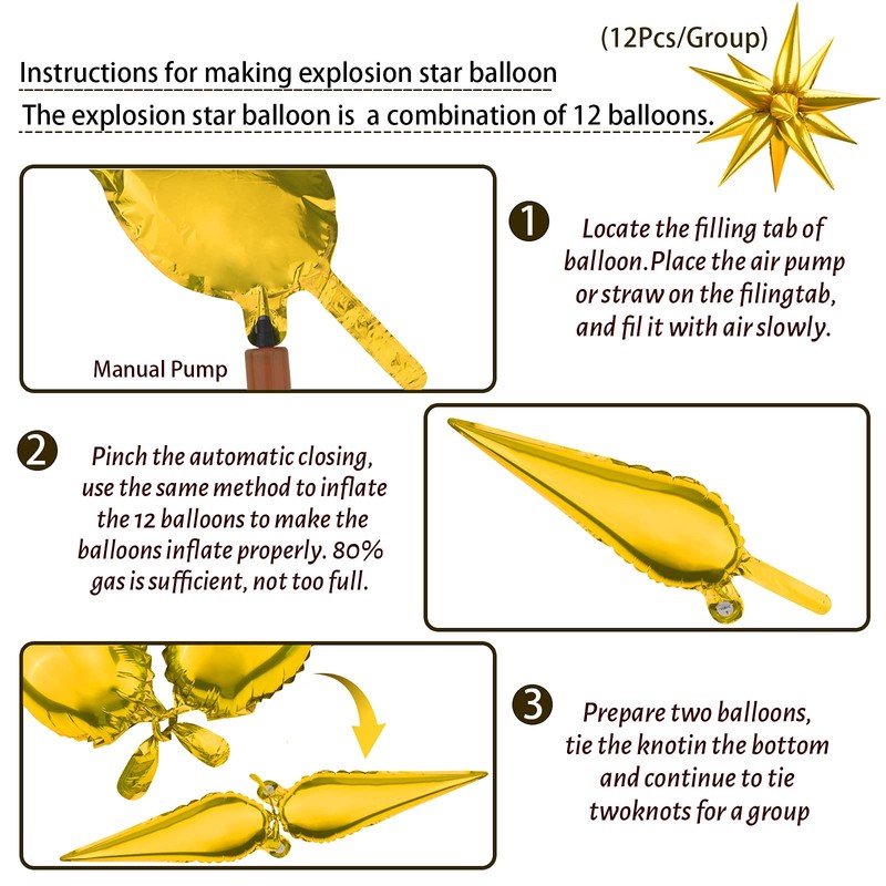 - 🌟Star Foil Balloons- Starburst balloon is made of aluminum foil, premium and durable material making the balloon look shining and exquisite.The starburst foil balloons are reusable and sturdy enough and not easy to pop.