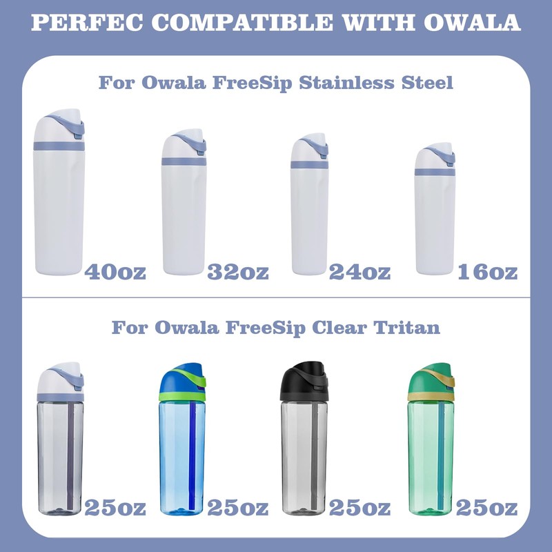 - Full Compatibility: Specially designed for owala freesip insulated stainless steel water bottle, and compatible with owala freesip 16oz 24oz 32oz 40oz water bottles and 25oz Clear Tritan plastic water bottle.