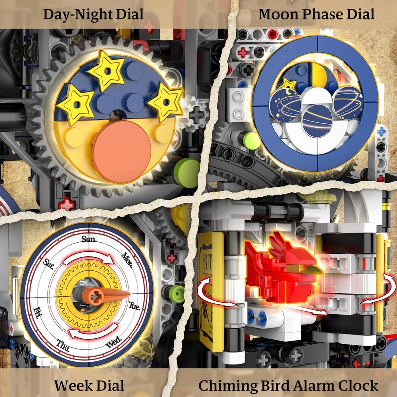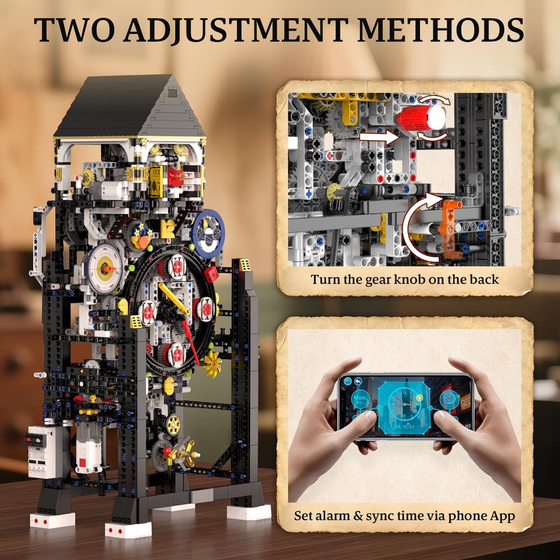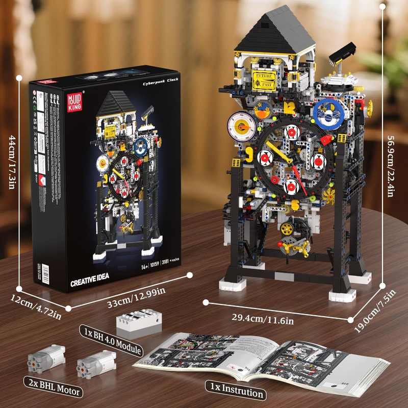 - 【 Cyberpunk Mechanical Clock】Build an impressive 57cm-tall futuristic clock with 3,181 bricks! The openwork design reveals intricate mechanical details, making it both a functional timepiece and a striking desk ornament.