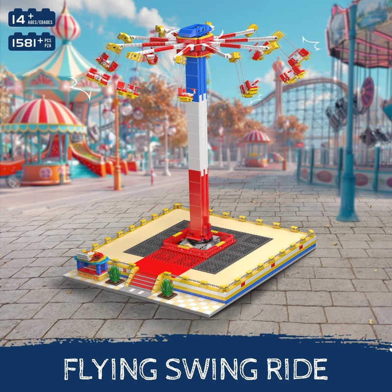 Mould King Flying Swing Ride Building Set, Rotating Flying Chair Amusement Park Model Kit, City Construction Building Blocks Set, Home Decoration Gift for Boys, Adults(1581 Pcs)