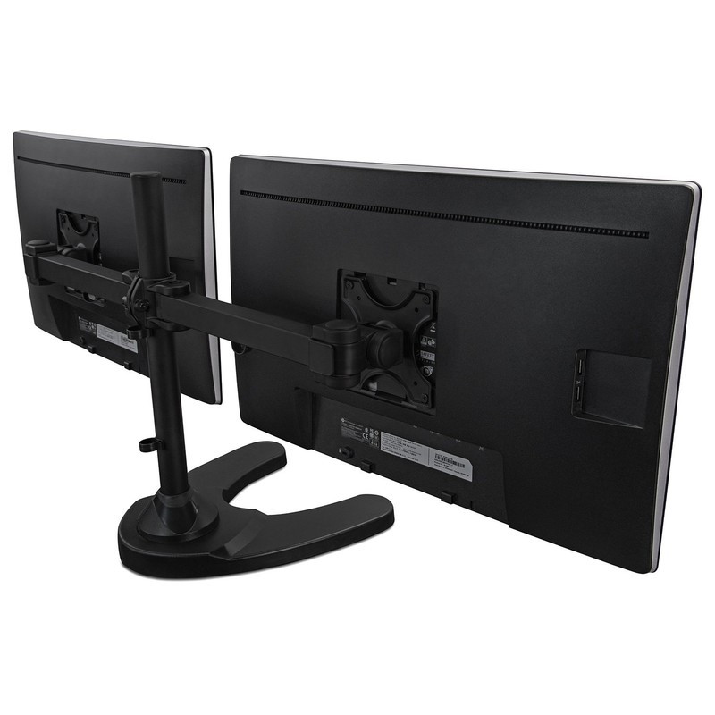 - DUAL MONITOR STAND DESK MOUNT: Fits two monitors 19 20 21 22 23 24 inches, with a maximum support weight of 22 pounds each, using the 75x75mm or 100x100mm VESA square bolt hole pattern found on the back of the monitors. Comes with interchangeable freestanding or grommet base mount for desktops.