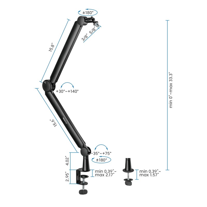 • NO MIC COLLAPSES: Thanks to the integrated friction control feature, the mic arm will securely support your microphone ensuring stability and preventing unexpected collapses while you're live. The arm can be adjusted in height up to 33.3 inches above your desktop.