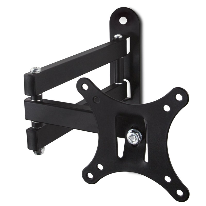 - SMALL TV MONITOR WALL MOUNT ARM: Fits one computer screen or television 19 20 21 22 23 24 25 26 27 inches in size, with a maximum support weight of 40 pounds, using the 75x75mm or 100x100mm VESA square bolt hole pattern found on the back of the TV/monitor. Mounts to a single stud on the wall.