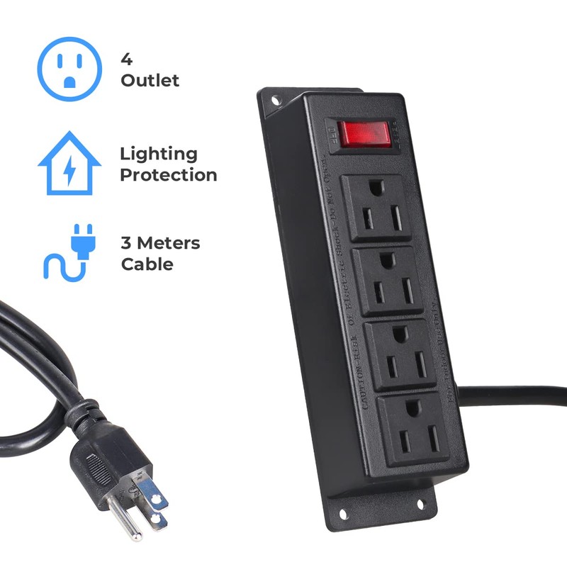 Mountable Power Strip with 4 Outlet, Wall Mount Under Desk Power Strip with 10ft Cord, Flat Plug Power Socket for Home, Office, Industrial, Black