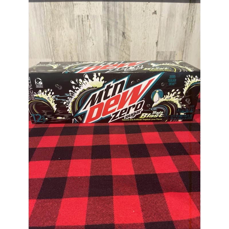 The product is a full 12 pack of Mountain Dew Baja Blast Zero Sugar 12oz cans. This collectible item features the popular soda brand Mountain Dew and is sure to be a hit with fans of the beverage. Each can represents a unique theme related to soda, making it a desirable addition to any collection of advertising memorabilia.