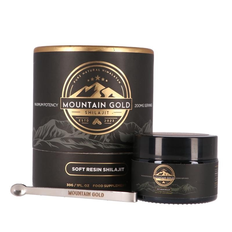 *PACKAGING MAY VARY* Introducing Mountain Gold's Shilajit, the ultimate elixir of vitality and wellness. Harvested from the pristine Himalayan mountains, our carefully crafted product brings you nature's purest essence in a convenient 30gm jar.