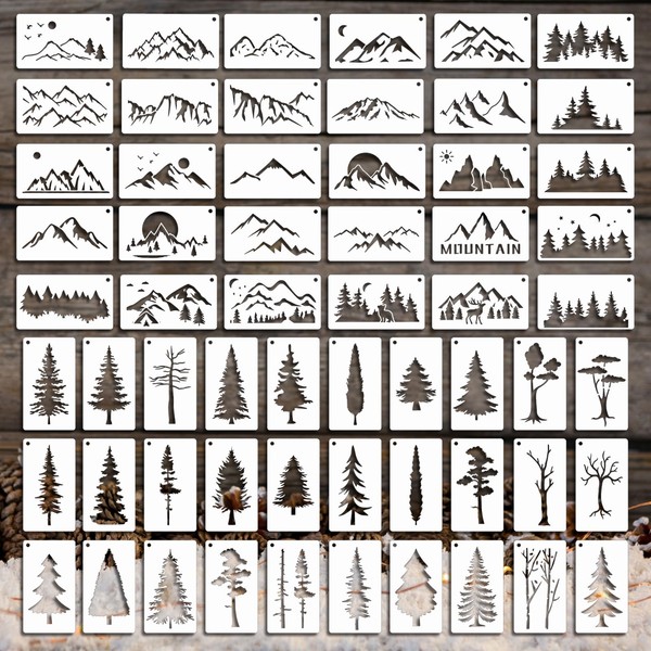Mountain Stencils for Painting On Wood & Walls for Crafts Christmas Tree Paint, Stencils for Painting Reusable Art Drawing Templates Drawing Stencil DIY Art Crafts (Mountain)