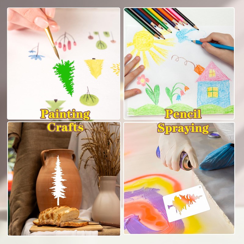- Easy to Use and Reusable: Made from durable and flexible material, these stencils are easy to use and can be reused multiple times. Simply position the stencil, paint, and lift to reveal stunning results. Whether you're painting walls, decorating furniture, or adding patterns to fabric, these stencils ensure consistent and precise results.