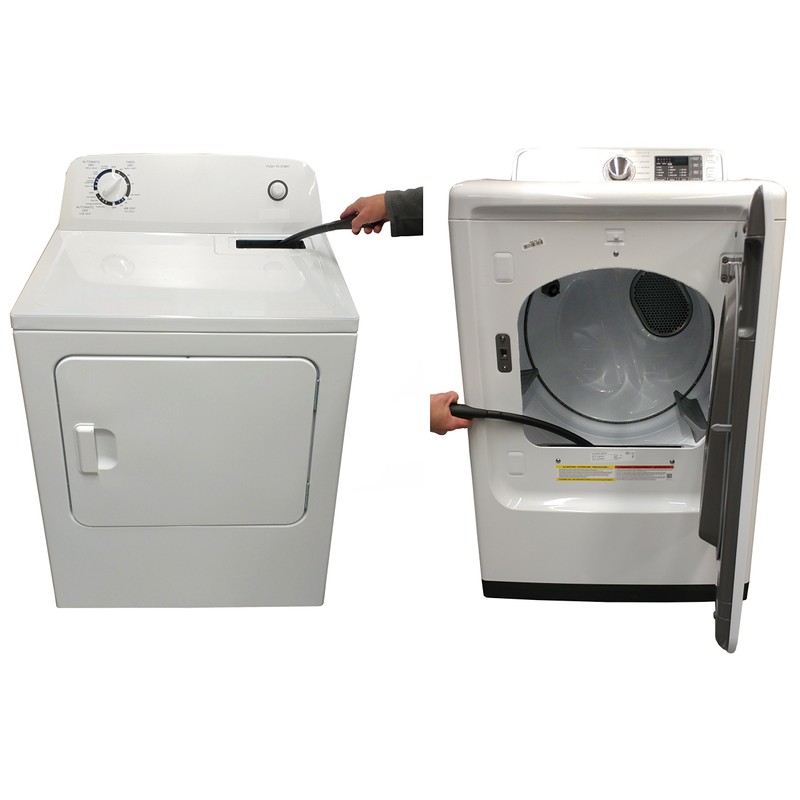 - This Dryer Cleaning Kit Is A Quick And Easy Way To Remove Dryer Lint This Dryer Cleaning Vacuum Attachment / Vacuum Extension Wand Is Simple And Effective Plus You Can Use This Dryer Vacuum Attachment Under Your Appliances, Refrigerator Coils, Sofa, Along Baseboards, and Ceiling Corners. It Adds 2 Feet To Your Reach!