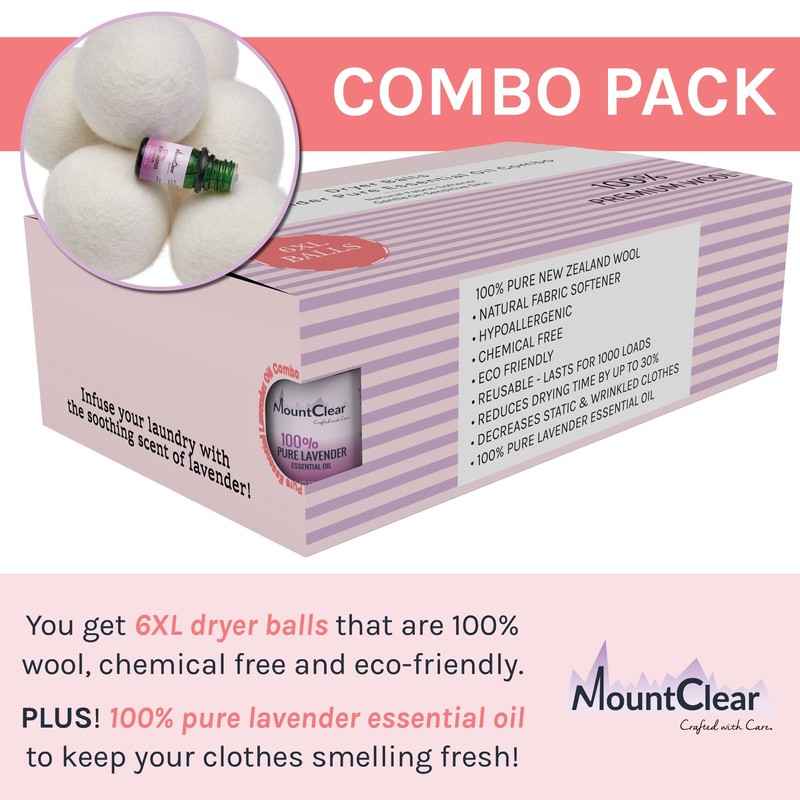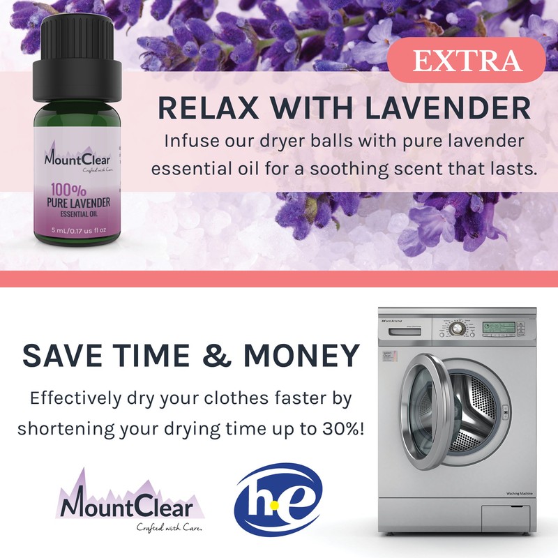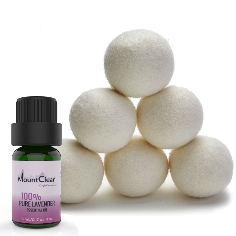 Mountclear Wool Dryer Balls-Lavender Scented Oil Fabric Softener-All Natural,Chemical Free and Hypoallergenic Reusable Washer Balls-Shorter Drying Time Saves Time and Money-Laundry Balls