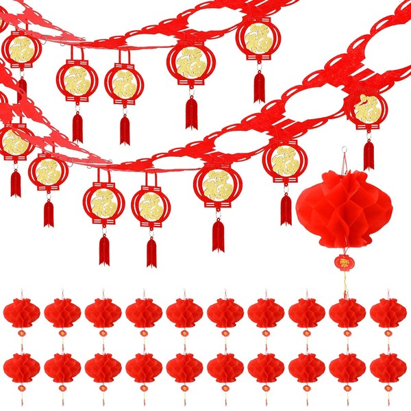 - Lunar New Year Decor 2025: The Chinese New Year party decorations set includes 4 gold Fu characters garland, and 20 pieces Chinese lanterns. Which can add infinite joy to your Chinese New Year party and bring you and your relatives and friends a full atmosphere of Spring Festival, good for 2025 the year of snake, family gatherings, friends gatherings and home decorations for the Chinese New Year