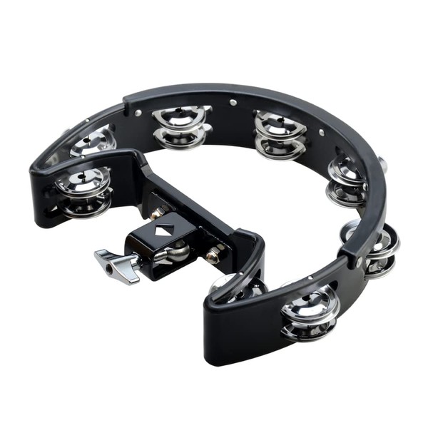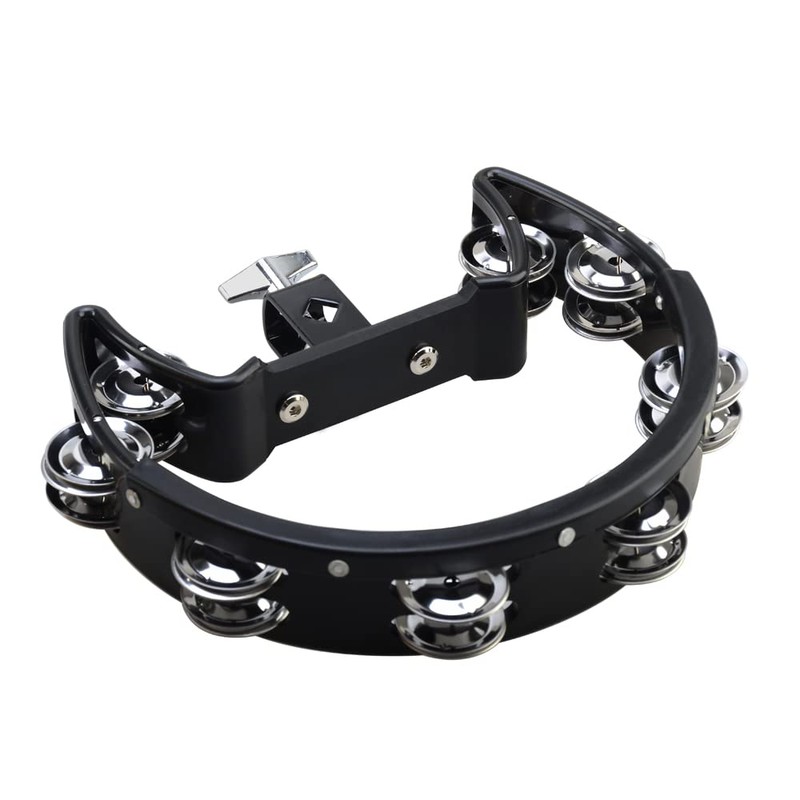 Mounted Tambourine,Drum Set Tambourine with Mounting Eye Bolt,Hi Hat Tambourine,Mountable Tambourine (8 double rows of jingles, Black)