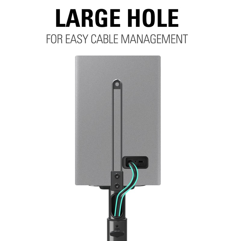 - Create a Clean & Organized Look - The stands elegantly display your speakers while hiding the speaker wires with the help of the hole( 0.8“ W x 1.73" H) for cable management. Warm Tips: Our speaker stands come with multiple attachments available for speakers with different holes. Please check the speaker holes location before purchase.