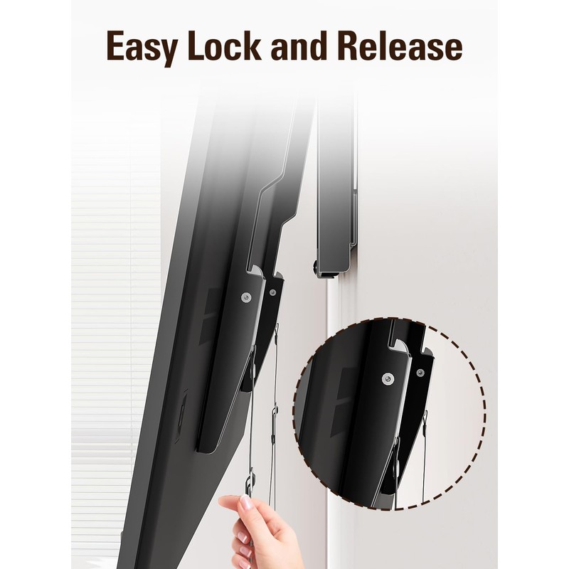 - [Easy Wall Mount for TV]TV wall holder, with classic pulling straps design, quick release and lock TV breezily, no screwdriver needed. Combined pre-labeled hardware kit with clear instruction and bubble level, mounting TV bracket in less than 30 minutes. (Concrete Anchors available on request. Anchors Specifications:φ10x50mm) Search MD2351 for an even easier TV mount.