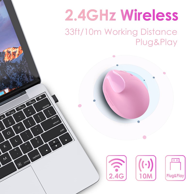 mouse ergonómico, pequeño y recargable vertical con 6 botones ajustables 800/1200/1600 DPI mouse inalámbrico rosa para computadora portátil, computadora de computadora y Mac