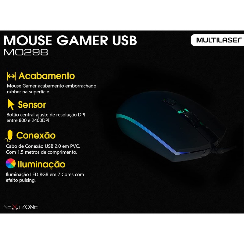 Mouse Gamer Multi 2400 DPI Black - Multi MO298
