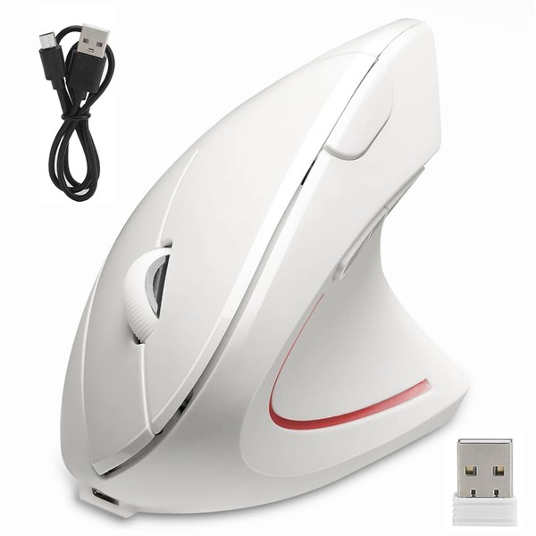 Mouse Inalámbrico Ergonómico Recargable, Mouse Vertical Óptico de 2.4Ghz con 3 DPIs Ajustables, Diseño de 6 Botones con Receptor USB, Compatible con Sistema Windows y Mac (Blanco)